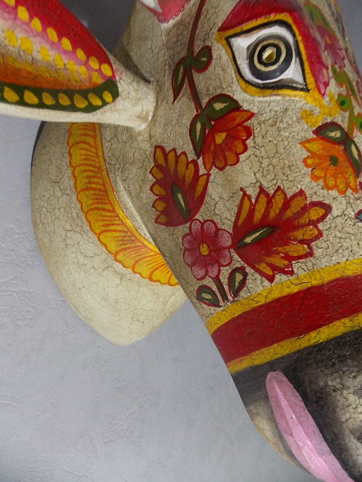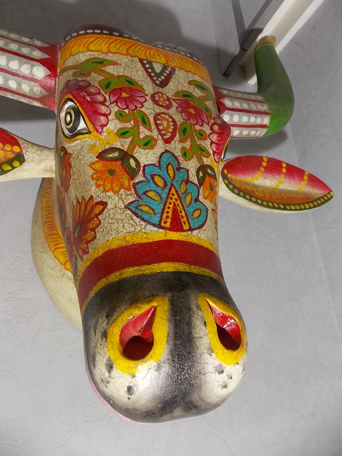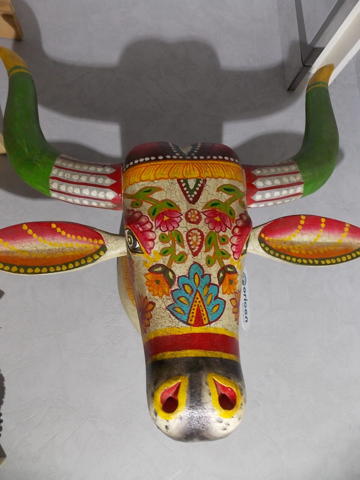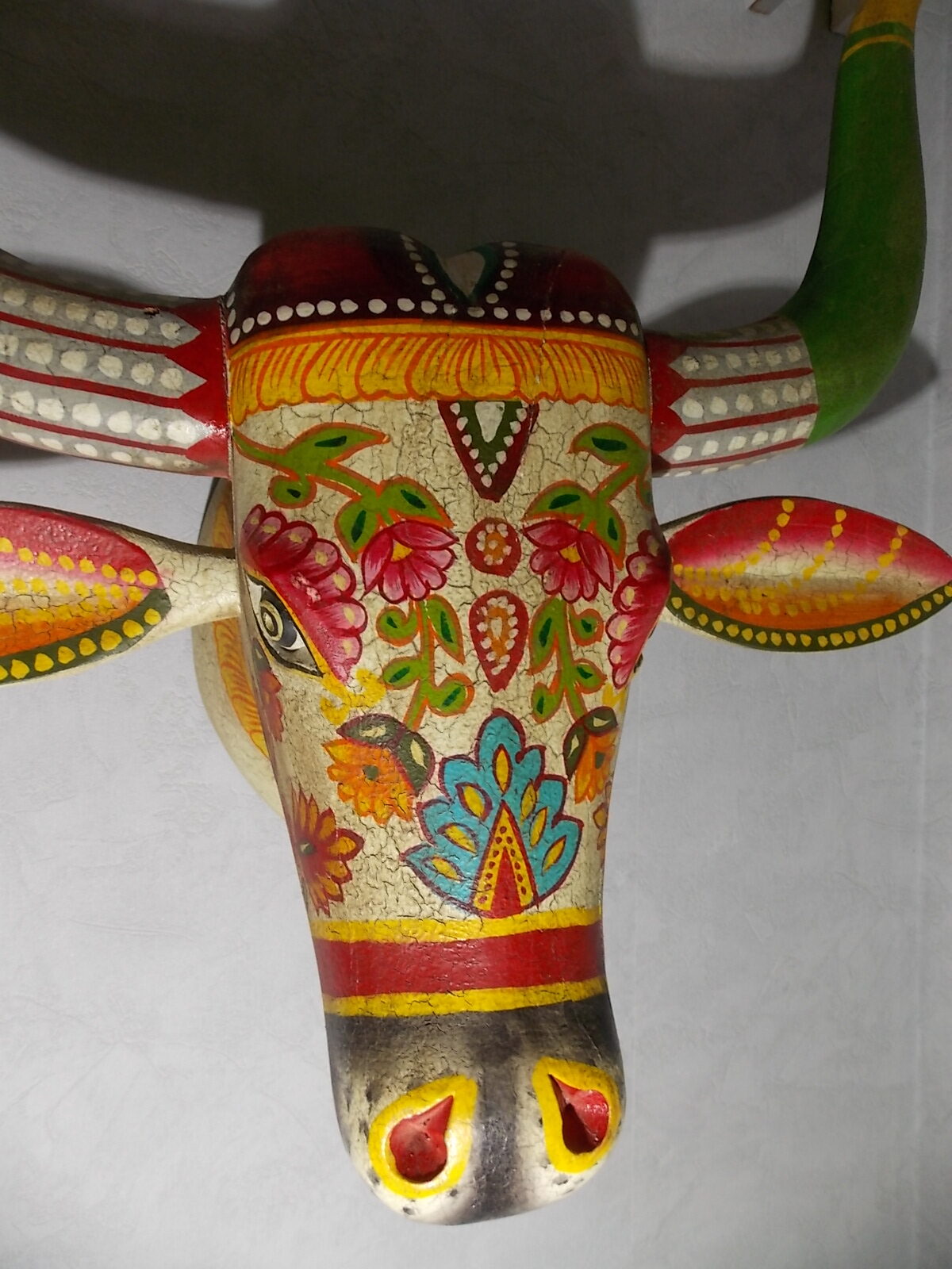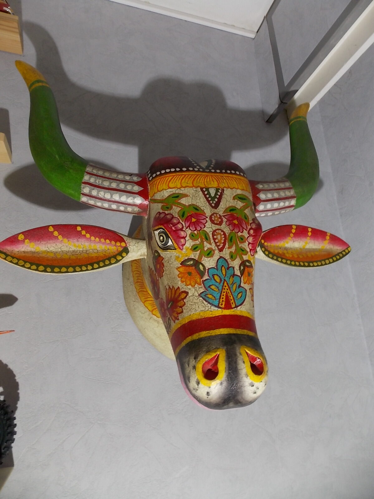 Grosse tète de vache décorée neuve, résine effet bois craquelé vintage ,poids + de 5kg.