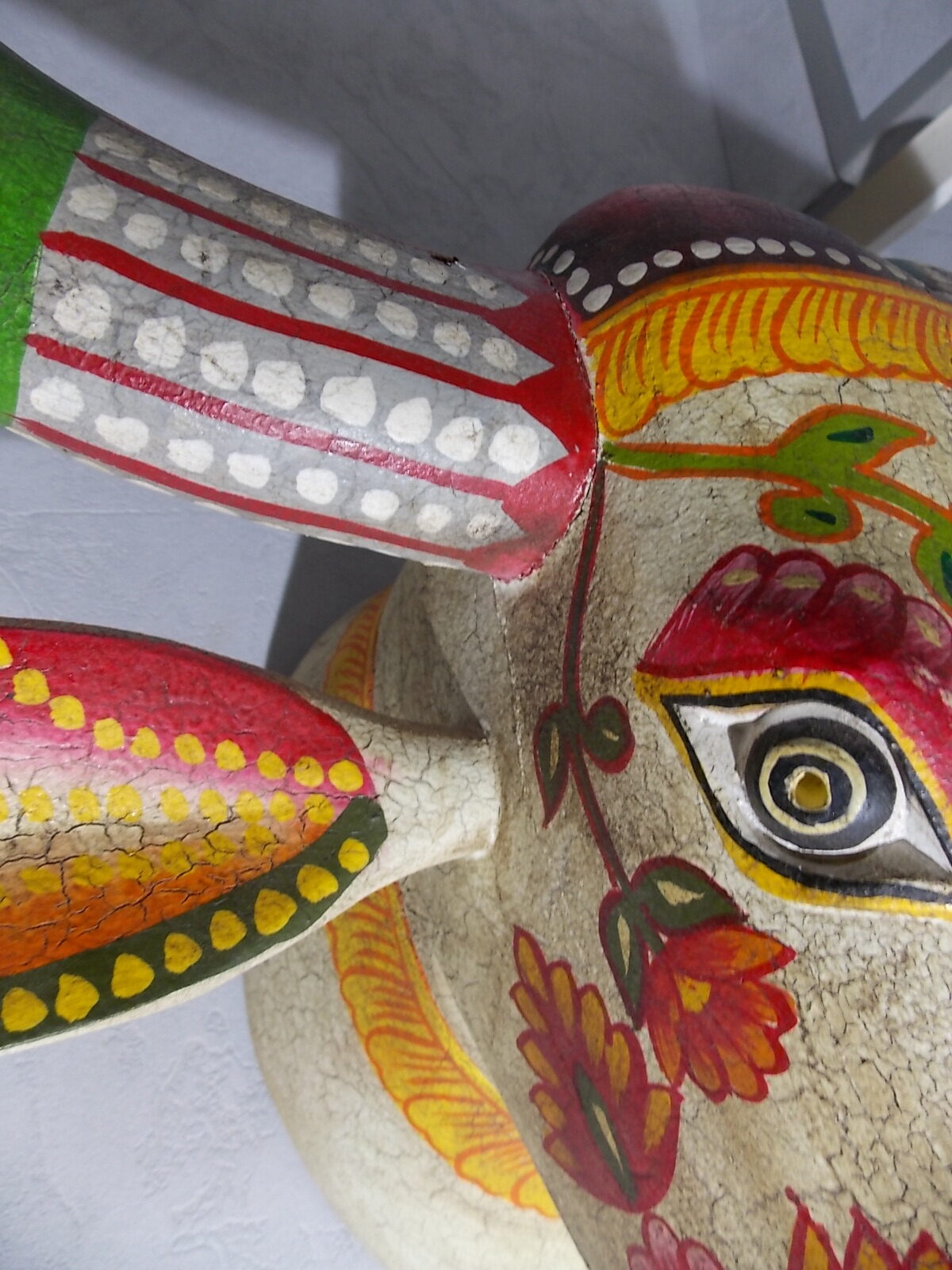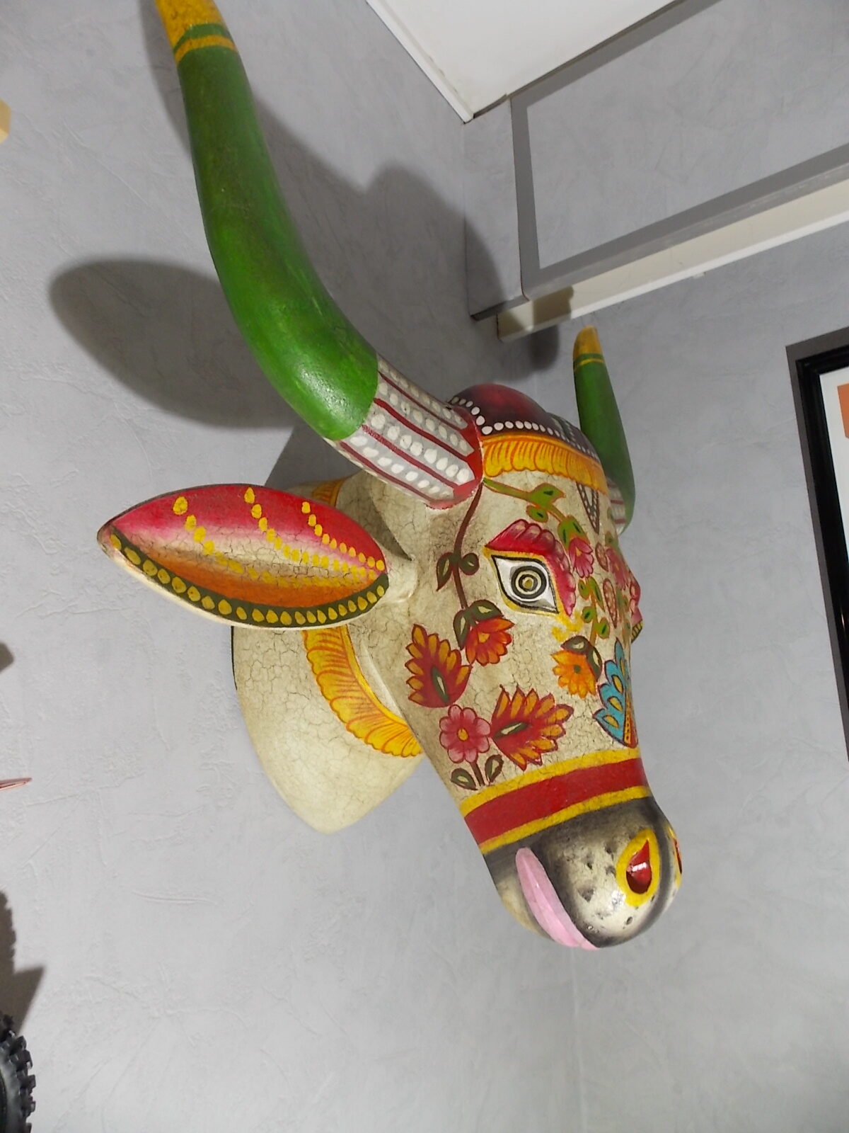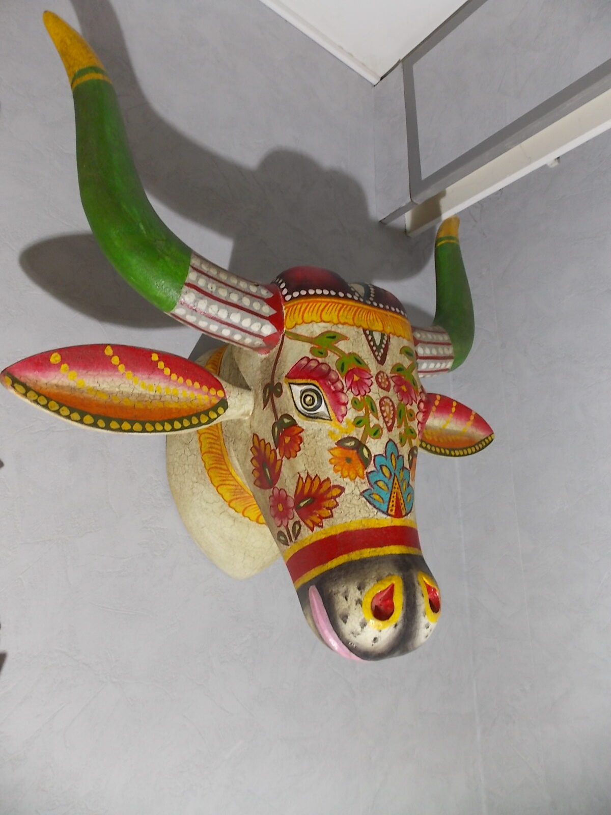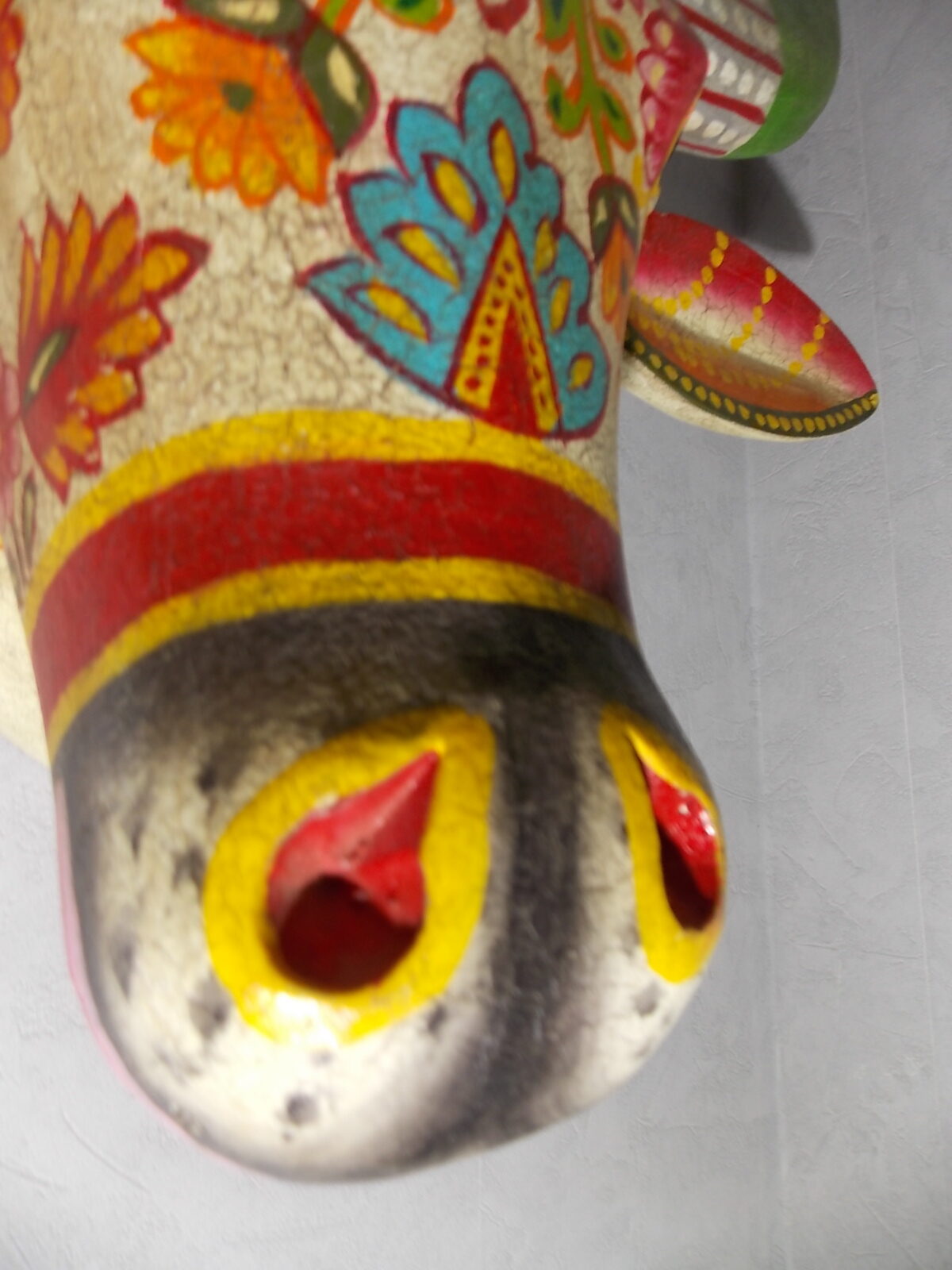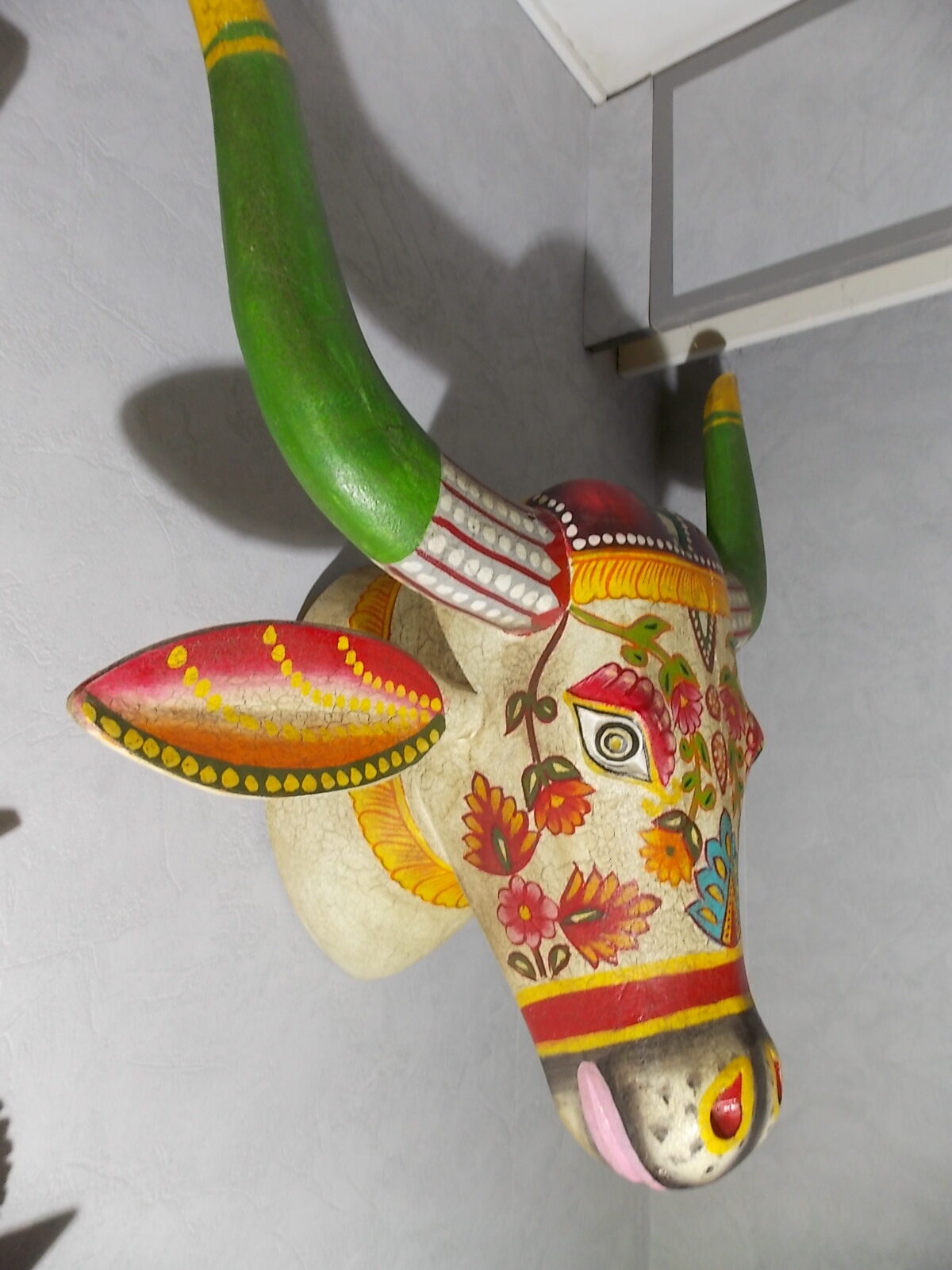 Grosse tète de vache décorée neuve, résine effet bois craquelé vintage ,poids + de 5kg.